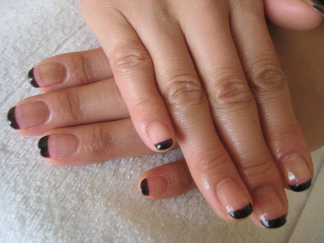 ピンクと黒のダブルフレンチです。ピンク&黒の組み合わせって、かっこいい! 黒の艶々がいい感じ。 参考価格¥7000(クリア¥4000+ダブルフレンチ¥3000) ★ 応急処置します ★ |