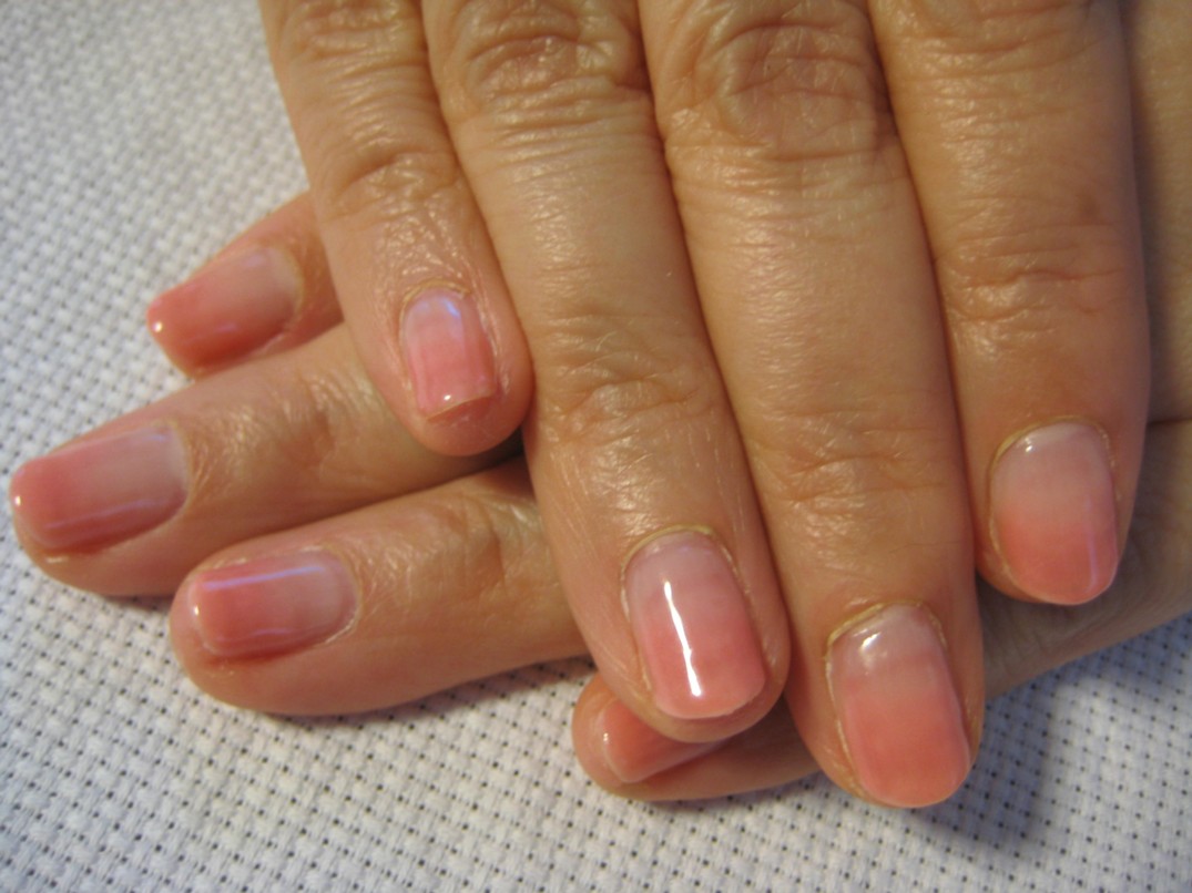 季節感と、前回と少しは気分が変わるようなものをと考えて、本日は温かみのあるサーモンピンクのグラデーションにしました。いつもなら先端をもう少し濃くするところですが、お客様にはこのくらいの柔らかい雰囲気が良いと思いうっすらグラデーションにしました。 参考価格¥5000(クリア¥4000+グラデーション¥1500) ★ 応急処置します ★ |