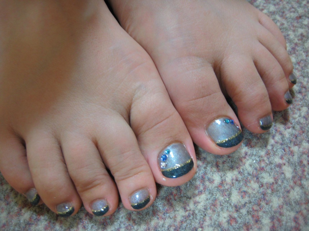 娘さんと一緒にご来店。お互いの施術中の待ち時間にとDVDを持参してきてくれました。「チャングムの誓い」です!私もだいぶ前にテレビでやっていた時に夢中で見ました。少女時代の子役が可愛くって可愛くって。私もまた最初から見たくなってきましたー。 フットネイルはシルバーをベースに黒フレンチ、ゴールドのラメラインを引きました。親指にブルー系のラインストーンをアクセントに飾りました。資生堂マキアージュの土屋アンナさんのネイルを参考にしました。クールでかっこいいです! 参考価格¥8300(クリア¥4000+カラー¥1000+フレンチ¥2000+ラメライン¥1000+ストーン¥300) ●営業時間についてはこちらから● |