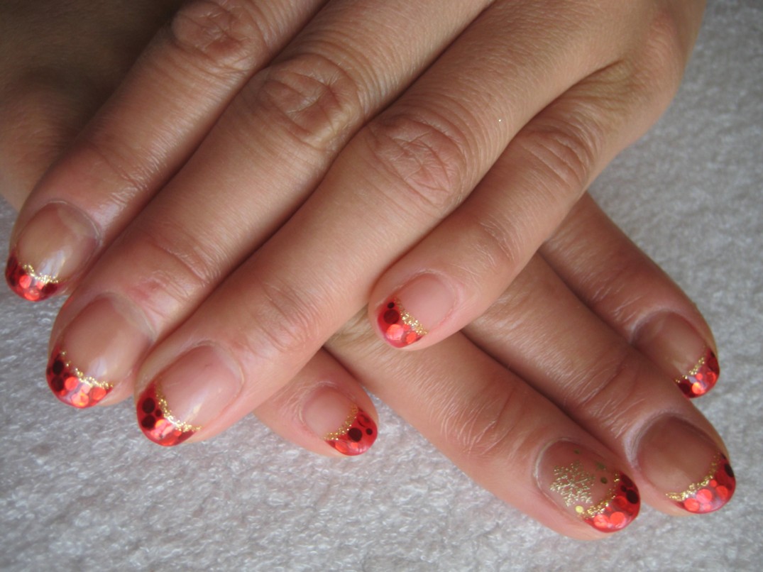 前回は赤の深めのフレンチに、ゴールドラメでアートをしたお客様。