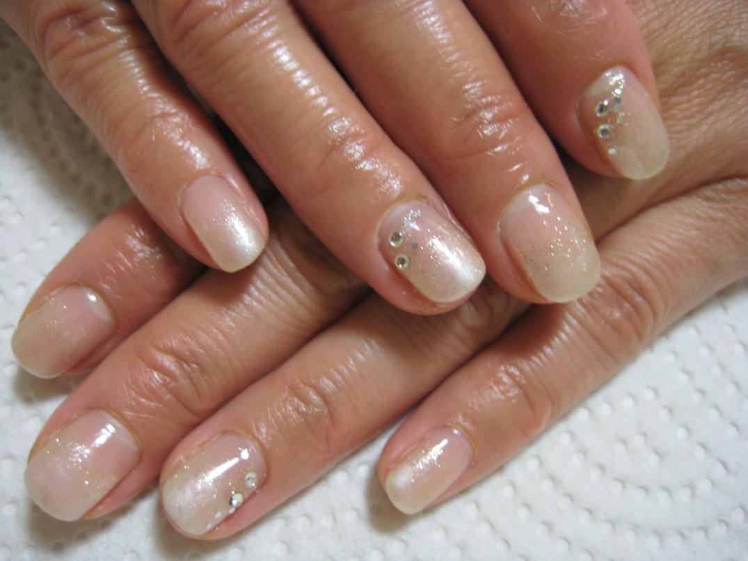 本日はベースにシルバーの細かいラメを散りばめ、ホワイトパールのグラデーションを重ねました。 参考価格¥7100(クリア¥4000+ラメベース¥1000+グラデーション¥1500+ストーンアート¥150×4本) ★ 応急処置します ★ |
