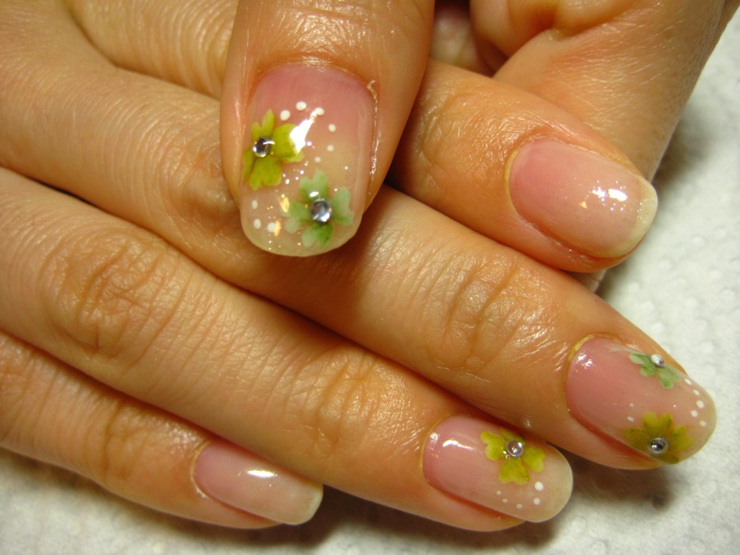 本日は白グラデーションに四葉のクローバーを数本の爪に描きました。