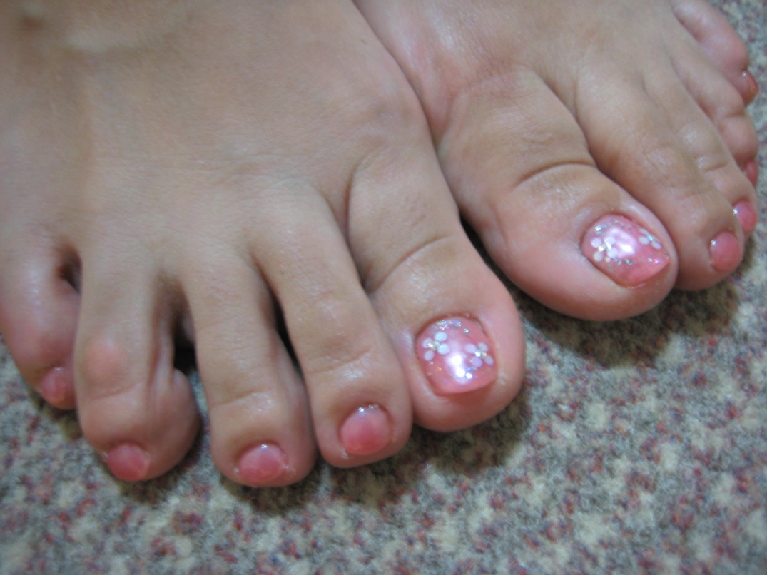 春めいてきたので、そろそろ足のネイルをしたくなったとご来店頂きました。 迷われていたので、夏だとわりとはっきりした色が人気ですが、まだ人に見せる元気なデザインより、自分の為のお洒落という感じで好きな色を選ばれたらいいんじゃないですか~?とアドバイスさせて頂きました。 そこでサーモンピンクのパールに親指にホロとラインストーンでお花を飾りました。上品で可愛いです♪ 参考価格¥5600(クリア¥4000+カラー¥1000+ストーン&ホロアート¥300×2本) ●営業時間についてはこちらから● PR |