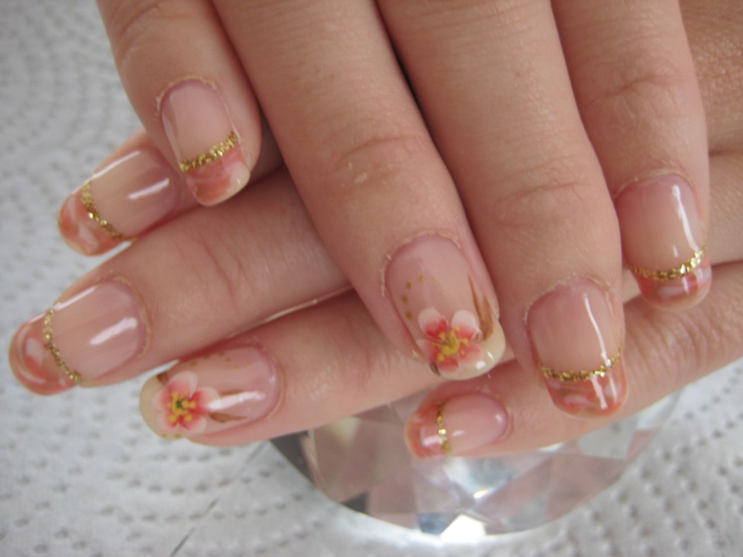 本日のネイルは、ピンク×茶×白のマーブルフレンチにゴールドライン。薬指に今月のアートの梅を描きました。 参考価格¥8400(クリア¥4000+カラー¥1000+マーブルフレンチ+ラメライン¥300×8本+グラデーションアート¥300×+2本シルクラップ¥200×2本) ★こちらのグラデーションアートは12月中は1本100円です★ ★12月のグラデーションアートキャンペーンは雪の結晶と梅です★ |