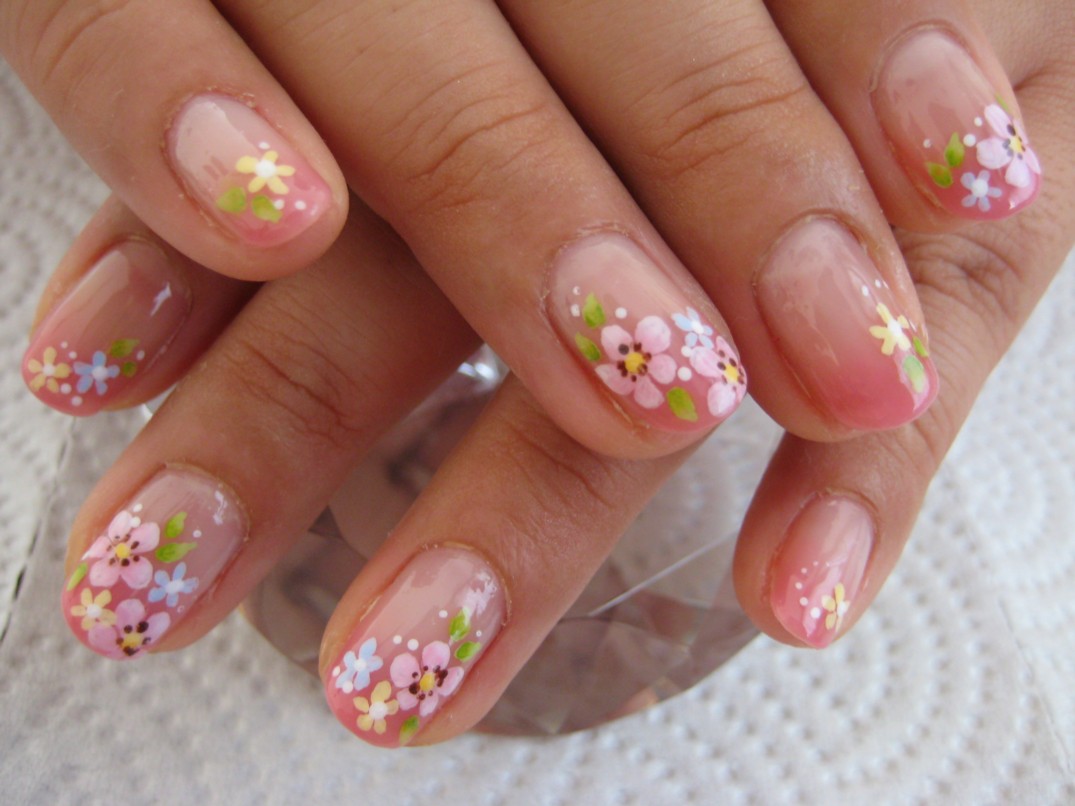 「いろんなところで可愛いネイルですね~って言われる」とか「電車の中とかで、ネイルを見られているのがわかる」と嬉しい報告をいただきました♪ 私も初めてグラデーションアートをネットで偶然見つけたとき、どこでできるの~?といてもたってもいられなくなりました。 まだまだ下手ですが、こういう言葉を頂くと本当に習って良かった~と思います。 本日は51番(ロゼピンク)のグラデーションにカラフルなお花のアートを全部の指に描きました。 参考価格¥8500(クリア¥4000+グラデーション¥1500+グラデーションアート¥300×10本) ★7月のグラデーションアートキャンペーンはひまわりとハイビスカスです★ |