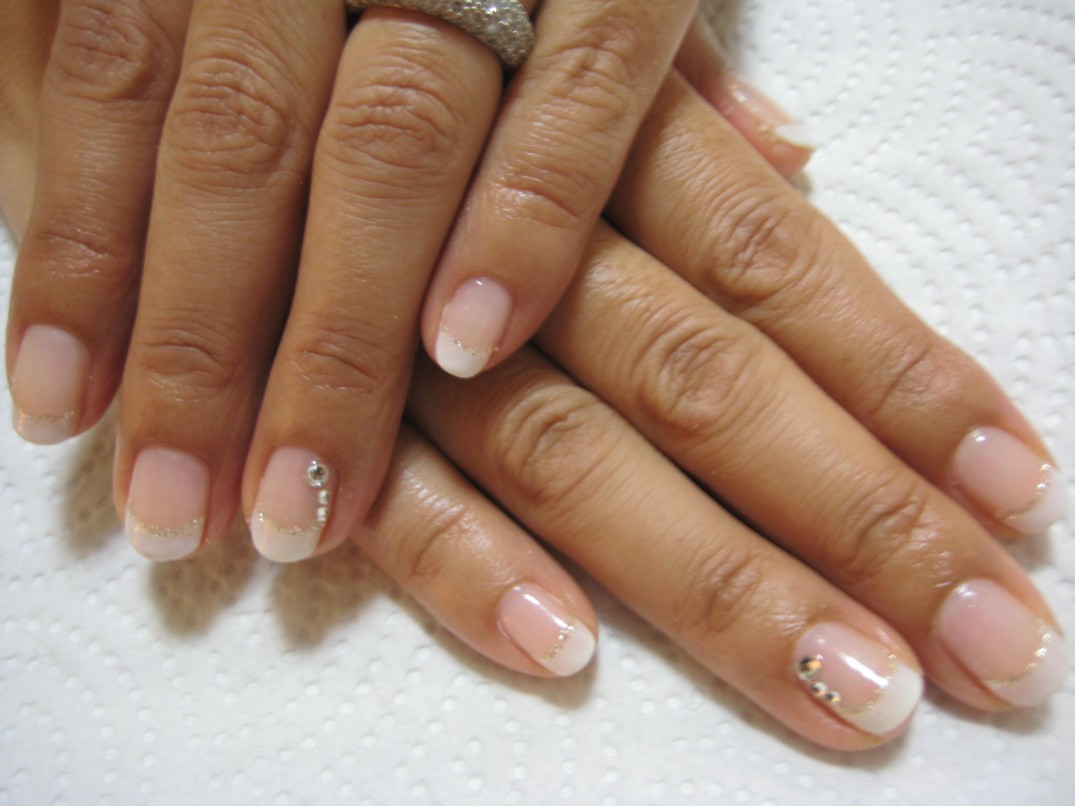 やっぱり私は好きですねー。素敵です~ 参考価格¥7300(クリア¥4000+フレンチ¥2000+ラメライン¥1000+ストーン¥150×2本) ★ 応急処置します ★ |