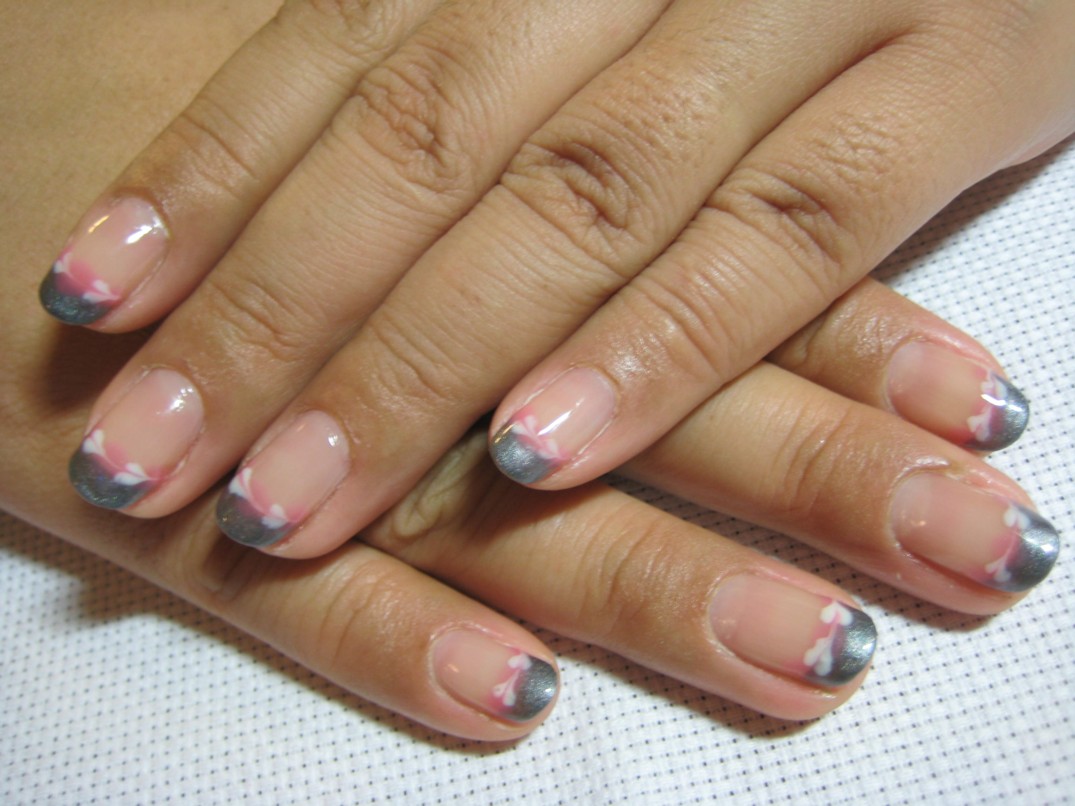 本日は新作デザイン、グレーのフレンチに白×ピンクのハートが横に並んだピーコックです。