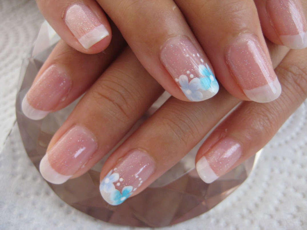 今回はモテネイルな感じになりました。ブルーのお花が夏らしく爽やかです。 ベースはダイヤモンドで、白フレンチに薬指と親指にブルーとブルーグリーンのお花を描きました。 参考価格¥7200(クリア¥4000+フレンチ¥2000+グラデーションアート¥300×4本) ★7月のグラデーションアートキャンペーンはひまわりとハイビスカスです★ |