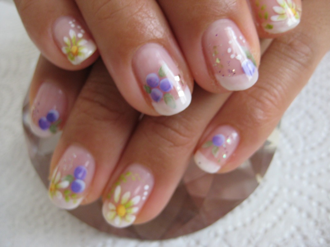 グラデーションアートを気に入ってくださり嬉しい限り!どんどんお花の種類を増やしていきますので期待してくださいね~。 本日は白フレンチにマーガレットとブルーベリー色の木の実を描かせてもらいました。 グラデーションアートをメニューに加えてまだ日が浅いので、始めは可愛く描けるか、気に入ってもらえるか恐る恐るという感じでしたが、アートの先生が「お客様に描くようになれば喜んでもらえて、もっと描きたくなるよ♪」と言っていたのが本当だなぁと日々実感しています。 もっともっと描きたいので、どんどんお客様が来ると良いなぁ… ブログをご覧になって、何かお聞きになりたい方は、予約じゃなくてもどうぞお問合せ下さい。予約フォームしかコンタクト方法がありませんので、そこから適当にどうぞ。 参考価格¥9000(クリア¥4000+フレンチ¥2000+グラデーションアート¥300×10本) ★6月のグラデーションアートモデル募集はアジサイとバラです★ |