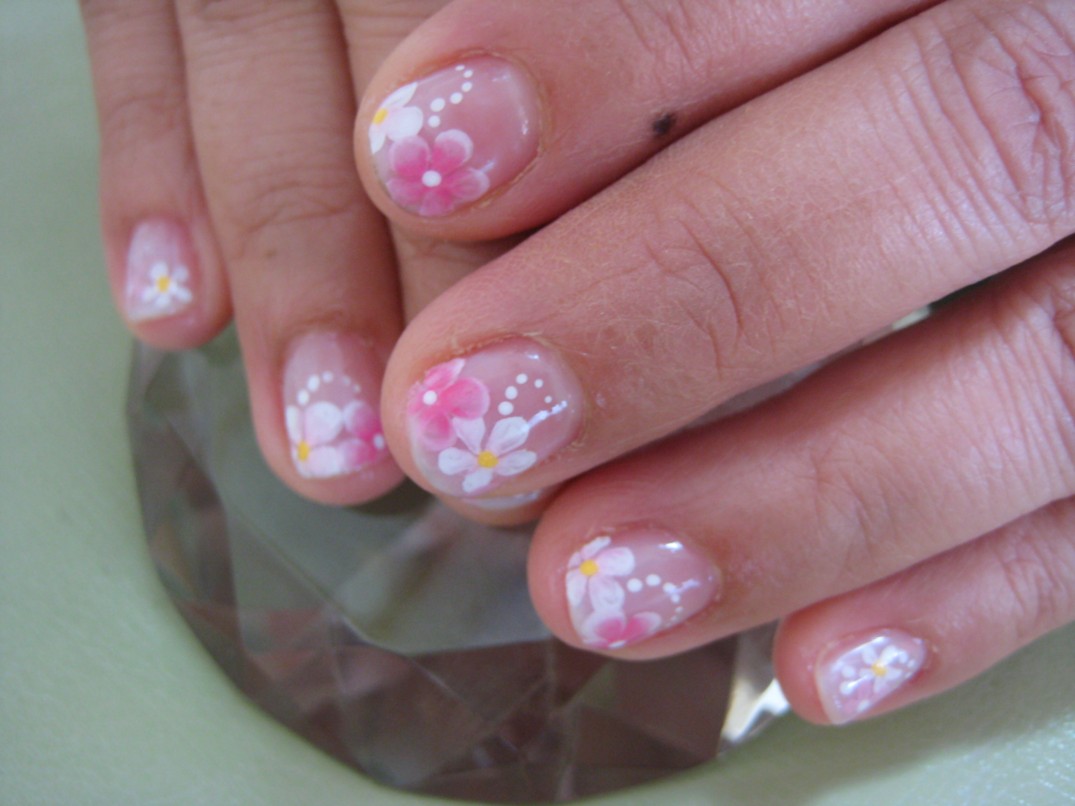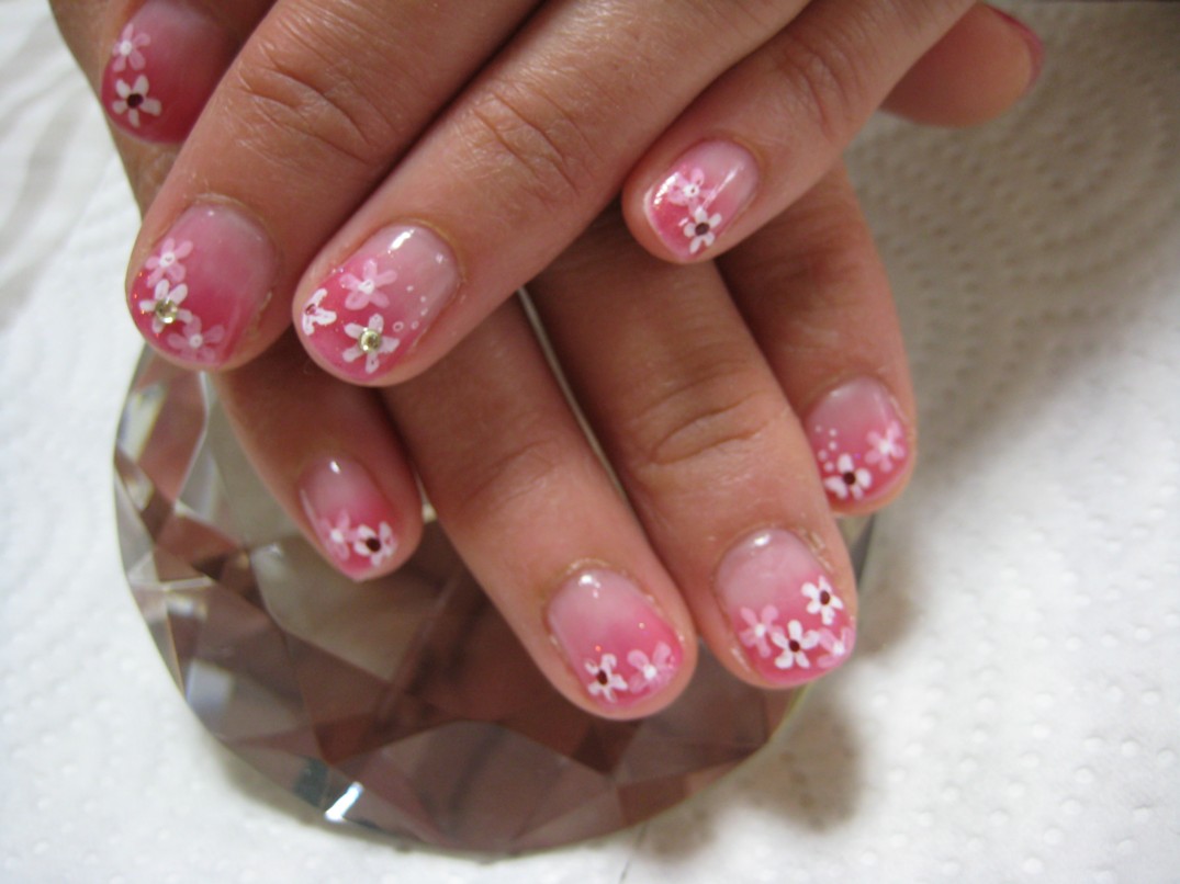 色やデザインが決まるまで、二人で仲良く相談されていました。 最近女の子のお子さんがいらっしゃるお客様から、娘が大人になったらネイリストになりたいと言っているという話をたびたび聞くことがあり、自分が子供の頃にはない選択肢と思い驚きです!そういう時代なんだなぁ。 39番(クリムゾン)のグラデーションに白、ピンクの小花を描き、小花のいくつかに黄色とグリーンのラインストーンをのせました。 参考価格¥5700(クリア¥4000+グラデーション¥1500+ラインストーン¥200+アートの価格はまだ決まっていません) ●営業時間についてはこちらから● |